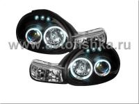 Dodge Neon (00-02) фары передние линзовые черные, со светодиодной подсветкой, комплект 2 шт.