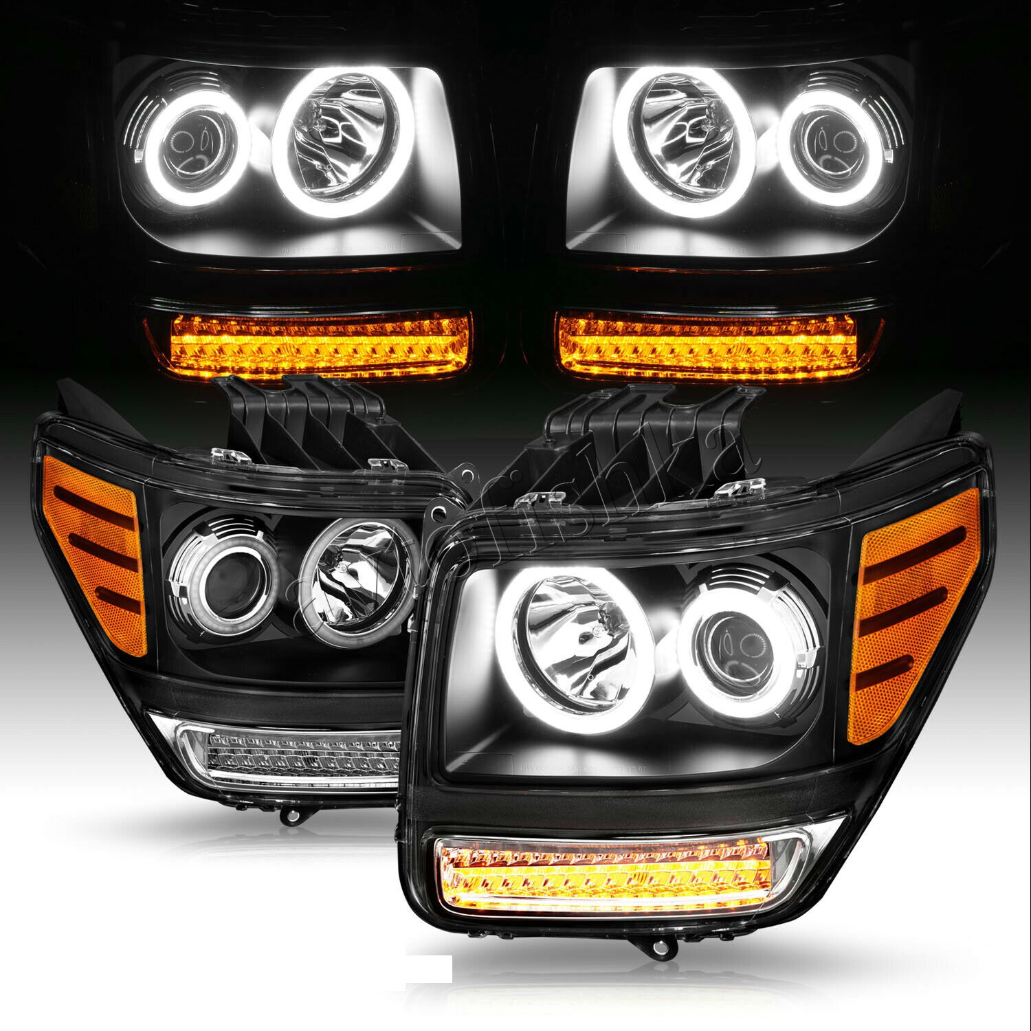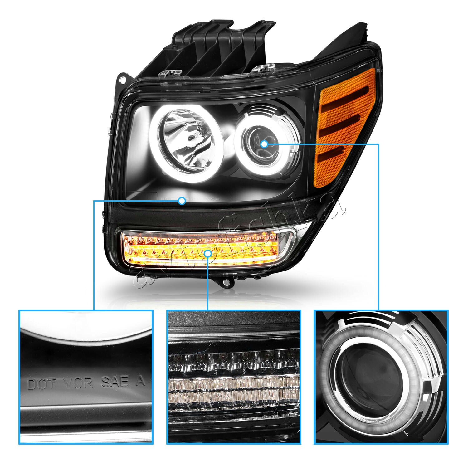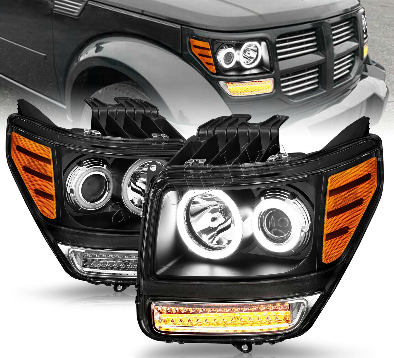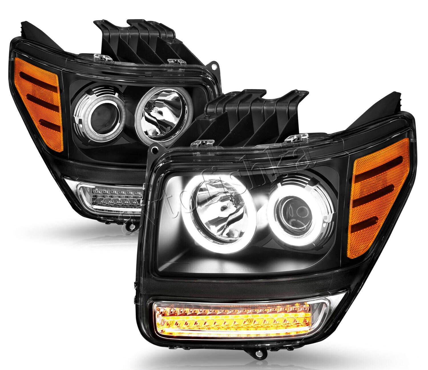 Dodge Nitro (07-) фары передние линзовые черные, со светящимися ободками и светодиодной подсветкой, комплект 2 шт.