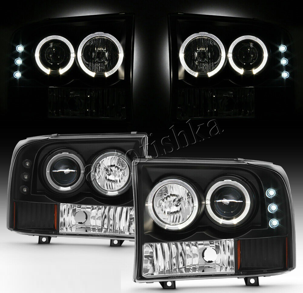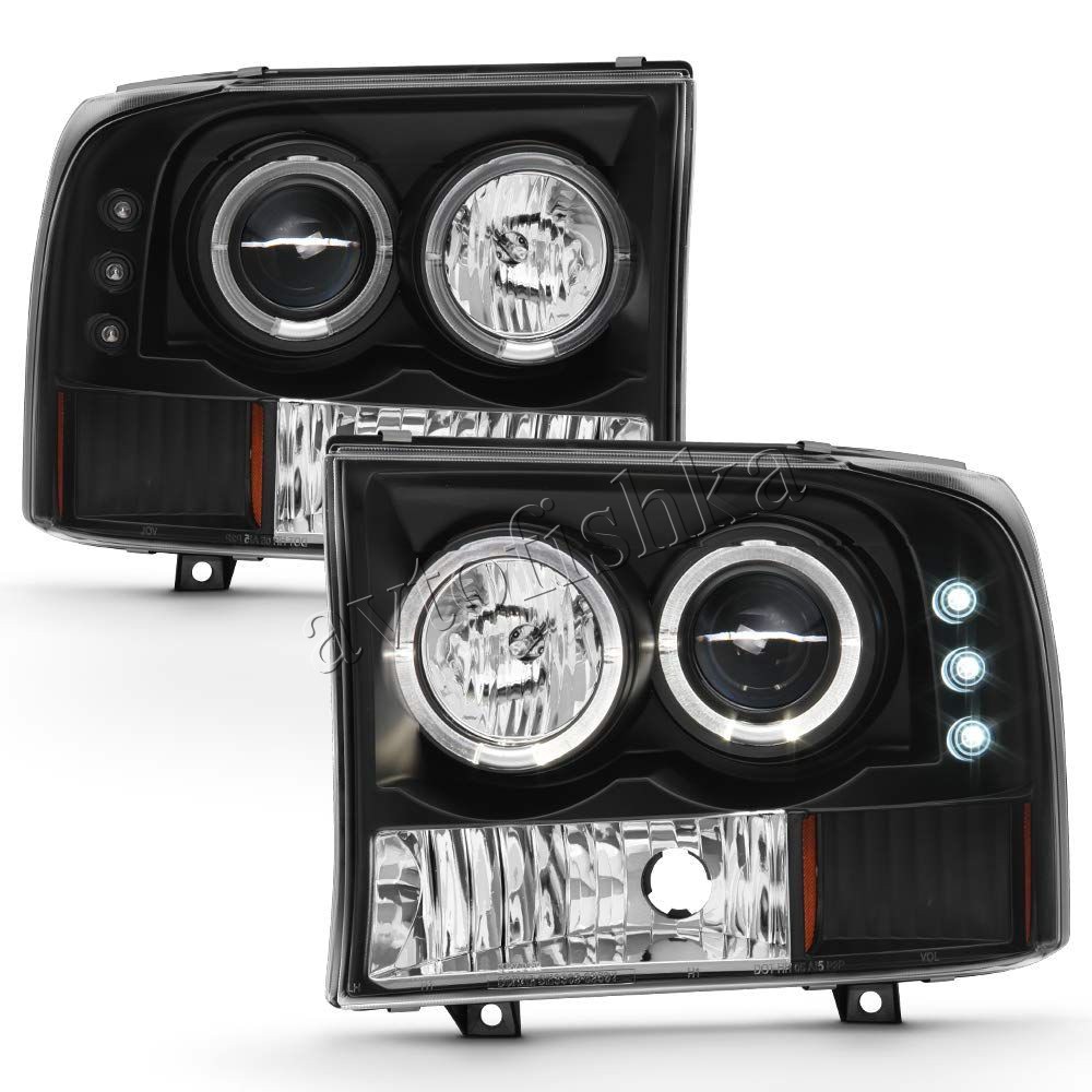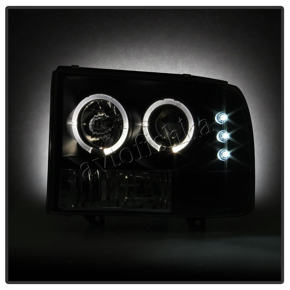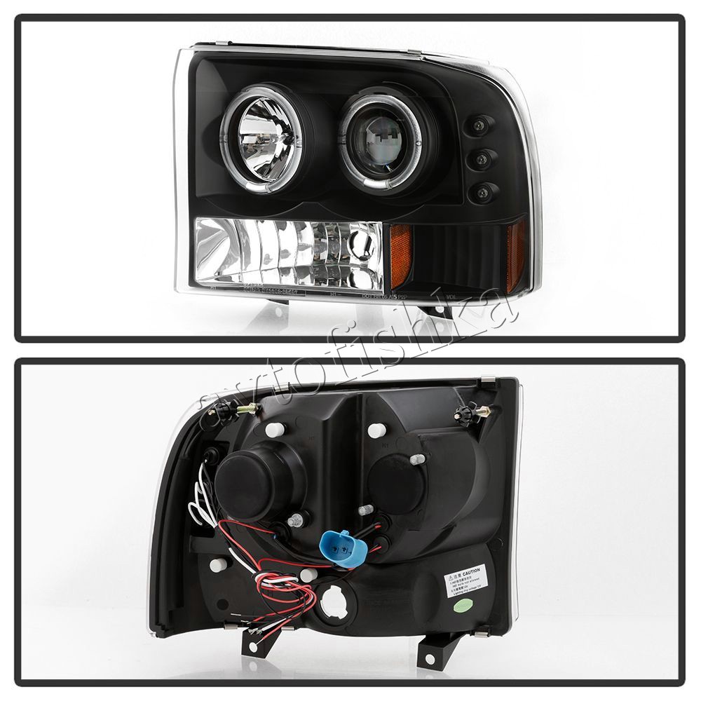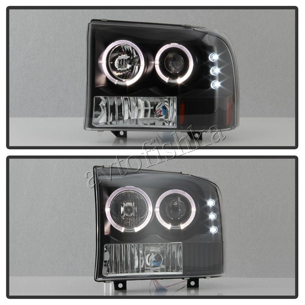 Ford Excursion (00-05) фары передние линзовые черные со светящимися ободками, со светодиодной подсветкой, комплект 2 шт.