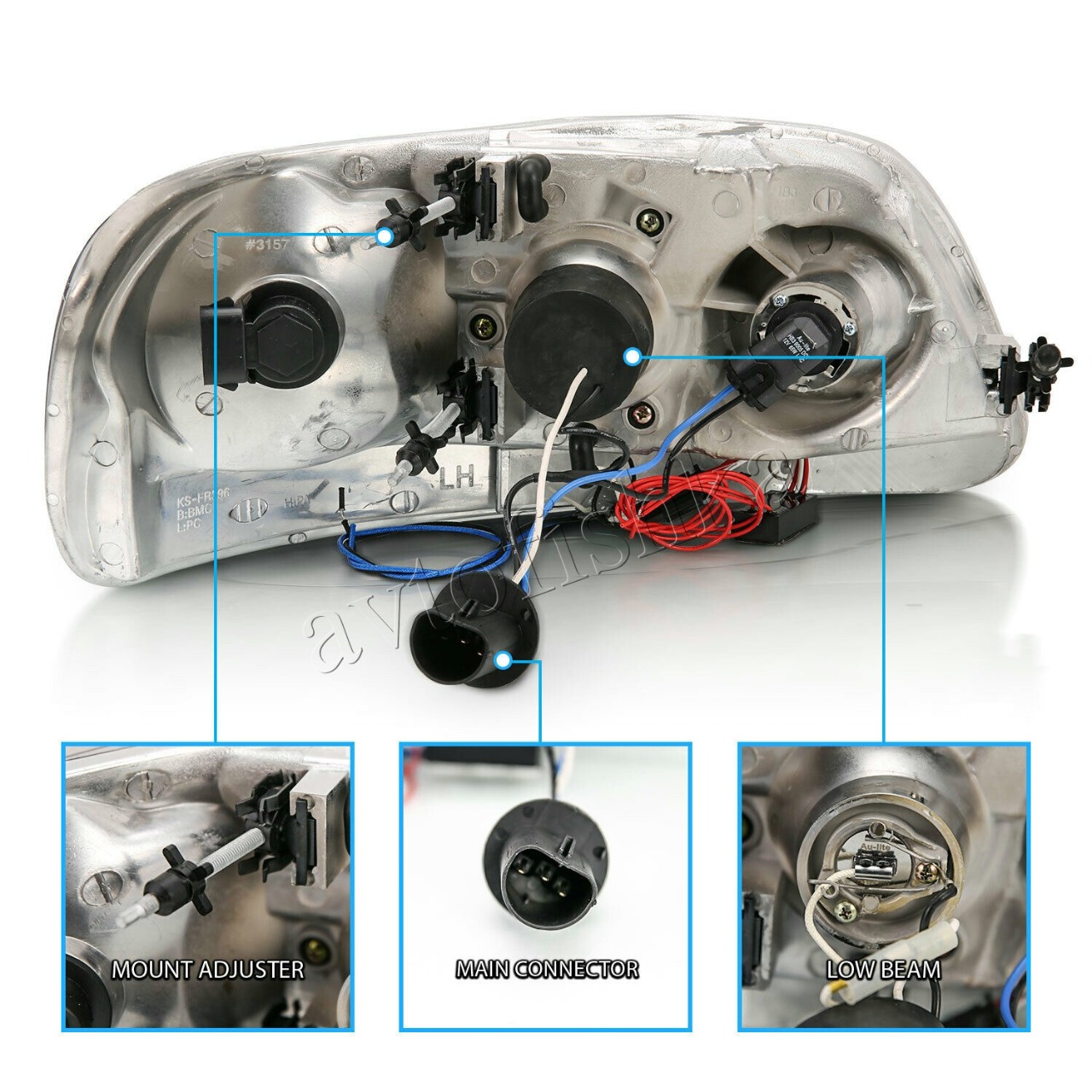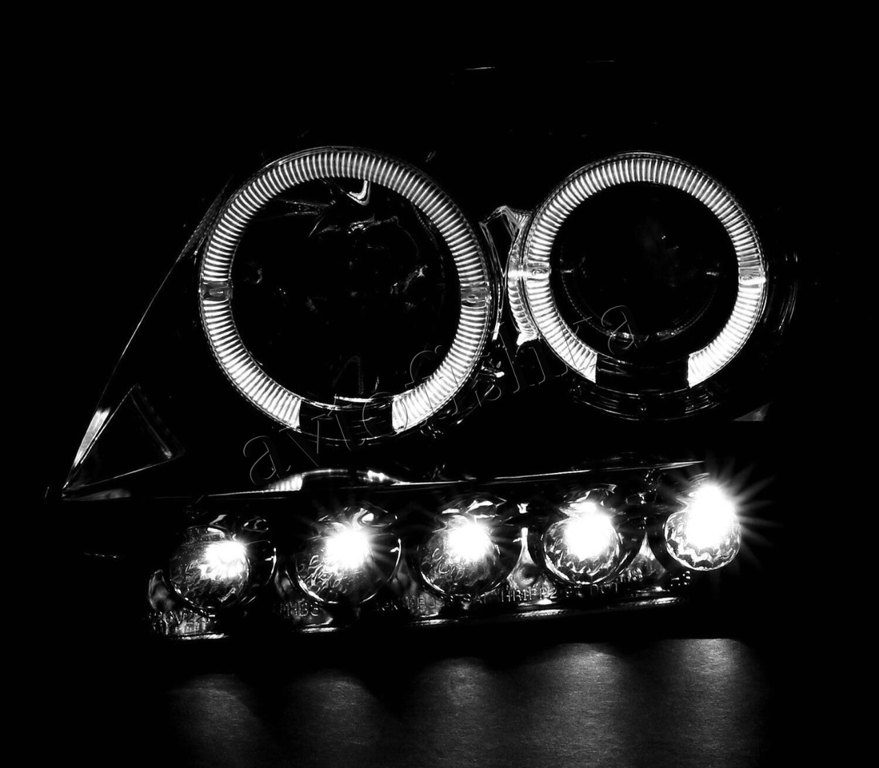 Ford Expedition (96-03) фары передние линзовые хромированные, со светящимися ободками и светодиодной подсветкой, комплект 2 шт.