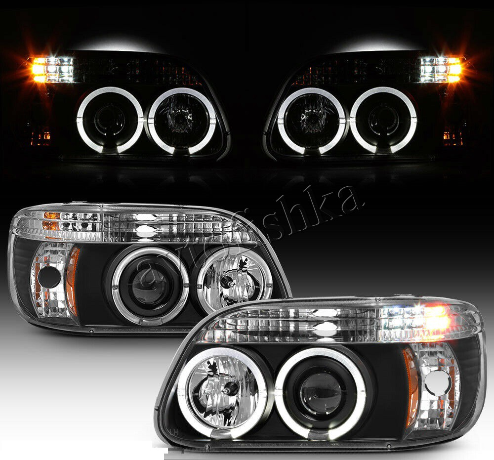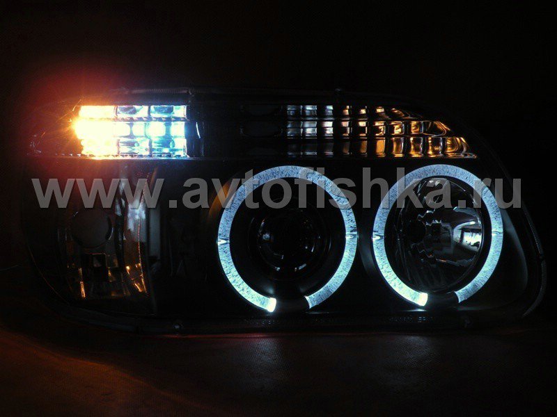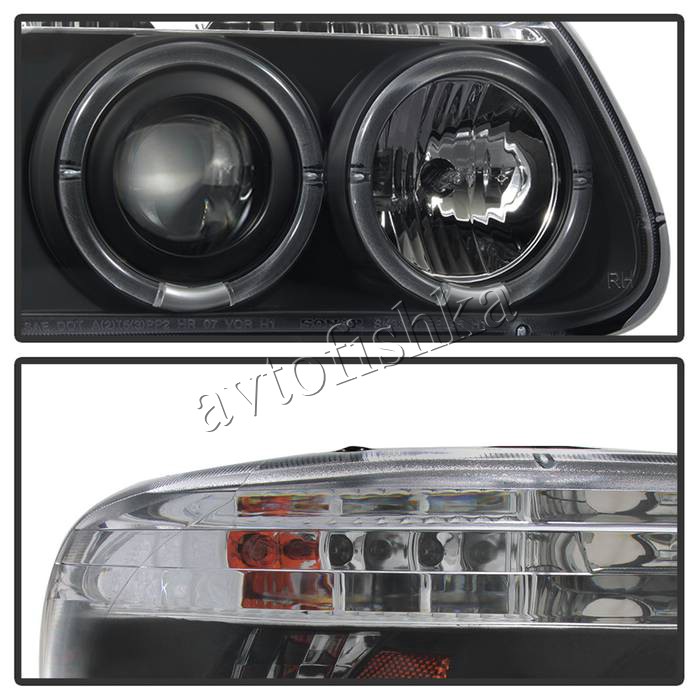 Ford Explorer (95-01) фары передние линзовые черные, со светящимися ободками и светодиодной подсветкой, комплект 2 шт.