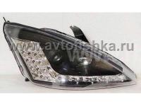 —Ford Focus (00-04) фары передние черные с DRL, линзовые cветодиодные.