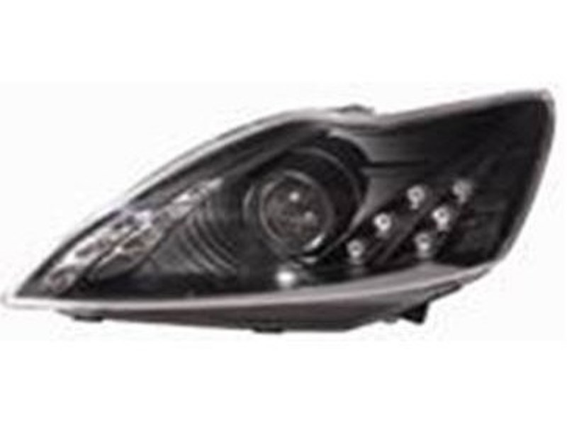 —Ford Focus (08-10) передние черные фары линзовые светодиодные с мотором электро корректора комплект 2 шт.