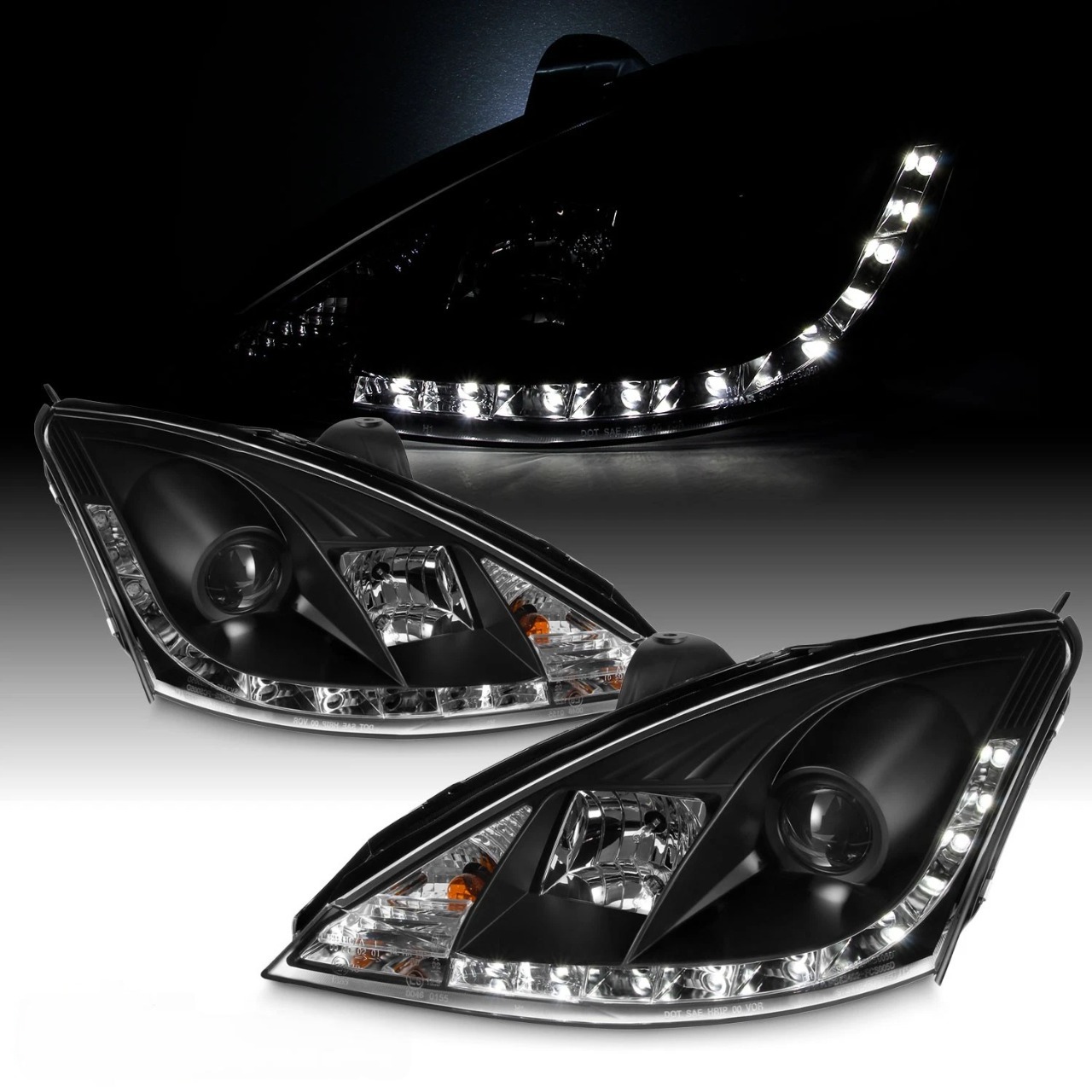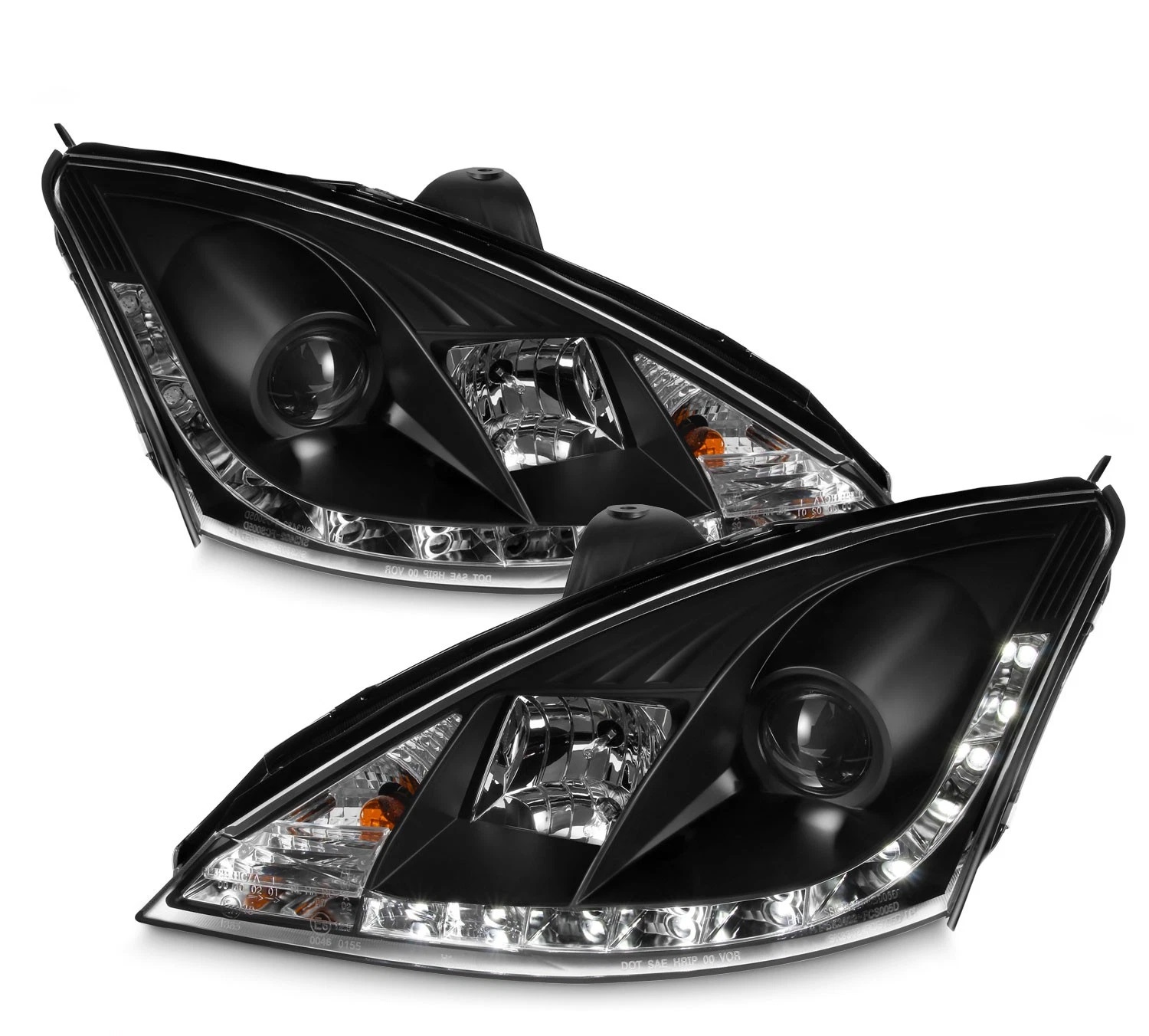 Передние фары для Ford Focus 1 (2000-2004) | Черные линзованные | Светодиодная подсветка в стиле R8