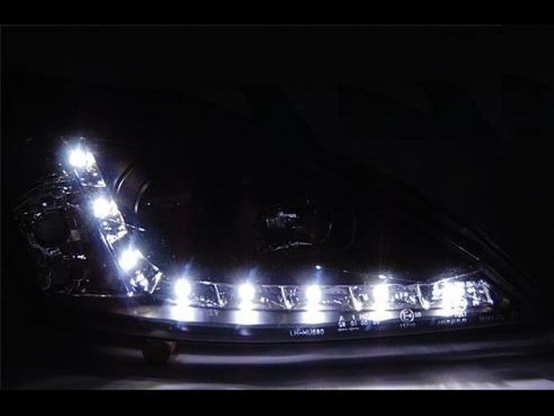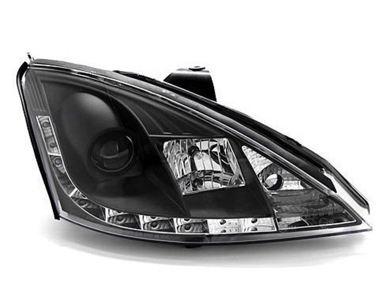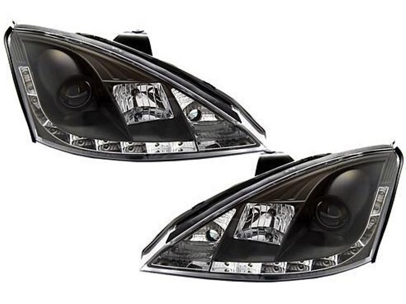 —Ford Focus 1 (1998-2004) Europe+USA фары передние линзовые черные, со светодиодной подсветкой, комплект 2 шт.