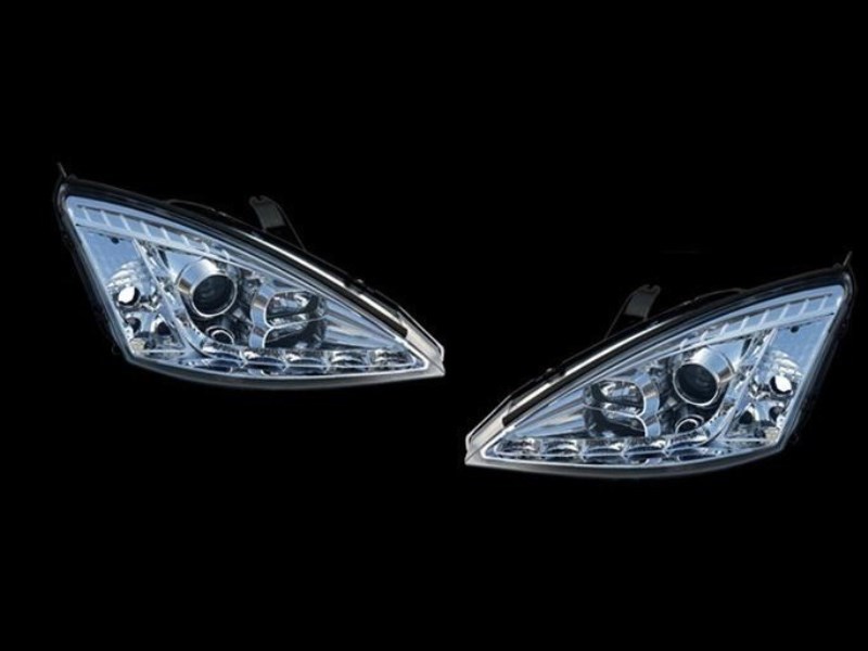 —Ford Focus 1 (98-04) Europe+USA фары передние линзовые хромированные, со светодиодной подсветкой, комплект 2 шт.