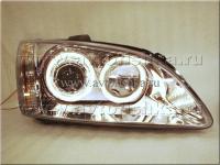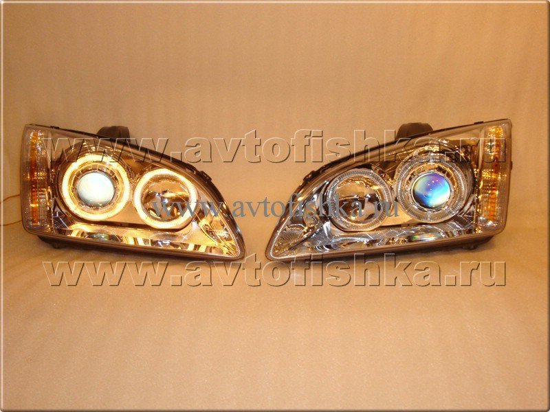 Ford Focus 2 (05-07) фары передние линзовые хромированные, со светящимися ободками, комплект 2 шт.