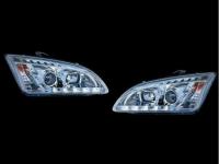 Ford Focus 2 (05-07) фары передние линзовые с нижней светодиодной подсветкой, хромированные, комплект 2 шт.