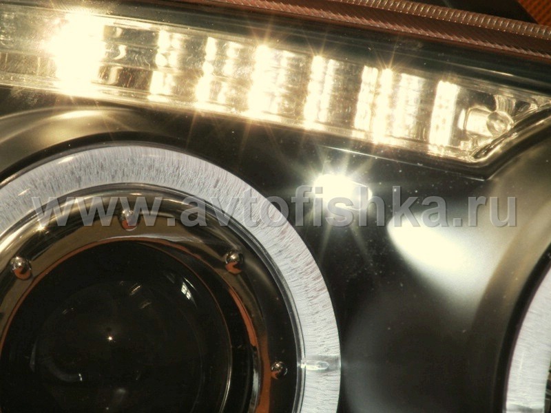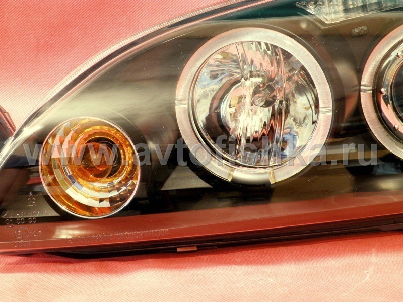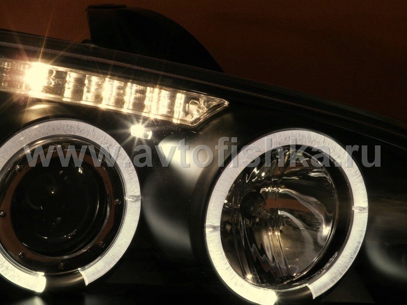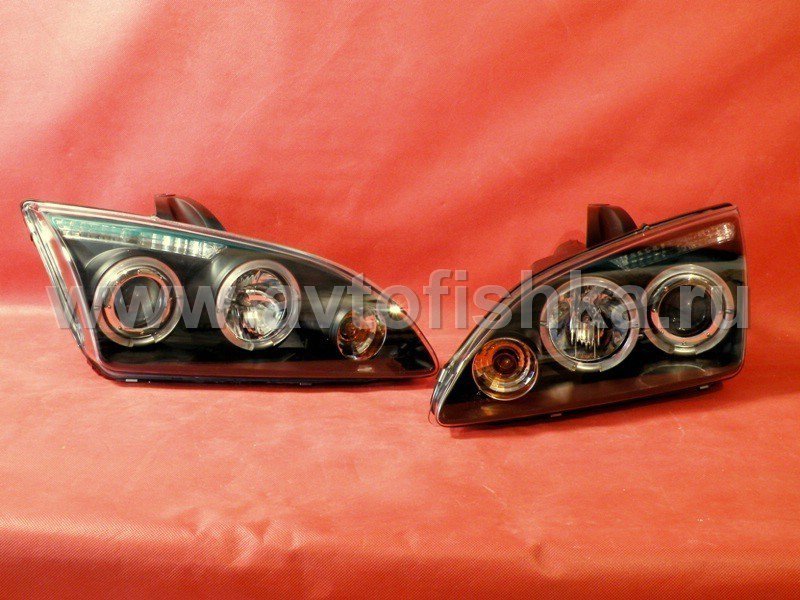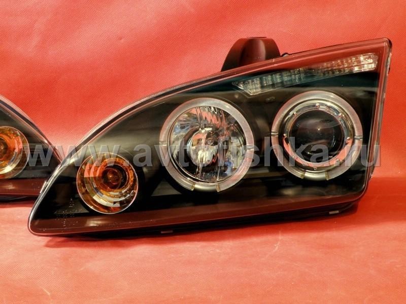 —Ford Focus 2 (05-07) передние линзовые черные фары, со светящимися ободками, комплект 2 шт.