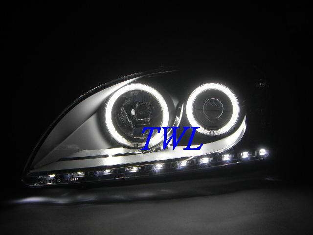 —Ford Focus 2 (05-07) передние линзовые фары с нижней светодиодной подсветкой, черные, комплект 2 шт.