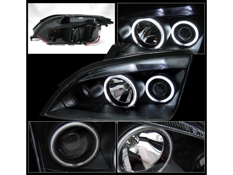 —Ford Focus 2 ZX4 (05-07) USA фары передние линзовые черные со светящимися ободками CCFL, комплект 2 шт.