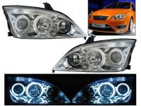 Фары передние линзованные с ангельскими глазками для Ford Focus II (2004-2008) | Хромированные