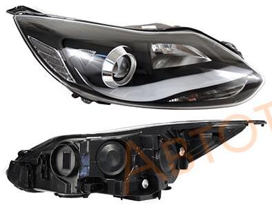 —Ford Focus 3 (11-13) тюнинговые фары линзовые со светящейся полосой, черные