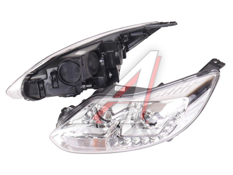 —Ford Focus 3 (12-13) фары ангельские глазки, линзовые, DRL, хромированные