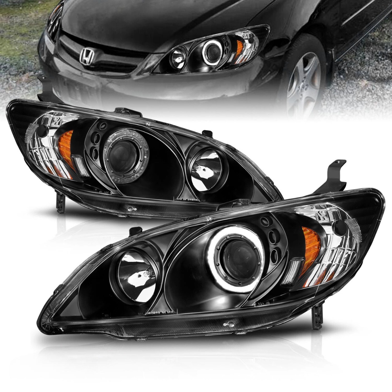 —Honda Civic, Ferio (2003-2005) передние фары линзованные черные с ангельскими глазками