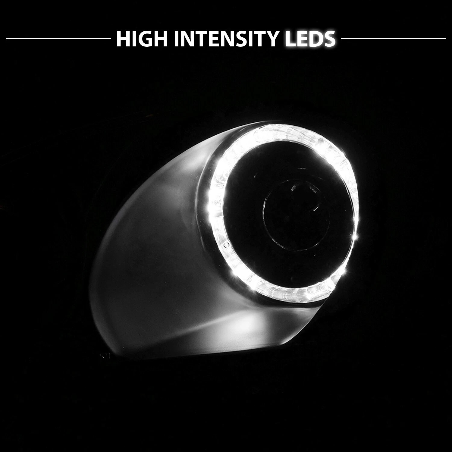 • Эффектные светодиодные ободки (LED Halo): Двойные светящиеся кольца выполняют функцию дневных ходовых огней или габаритного света, создавая яркую световую подпись и делая автомобиль заметным на дороге.