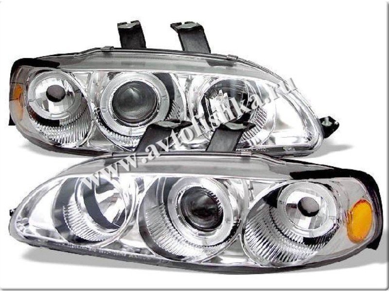 Honda Civic (92-96) 4 дв. фары передние линзовые хромированные, со светящимися ободками и желтым рефлектором, комплект 2 шт.