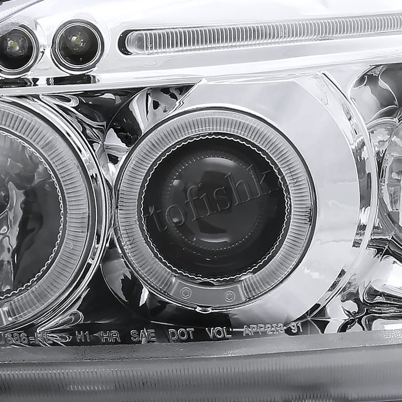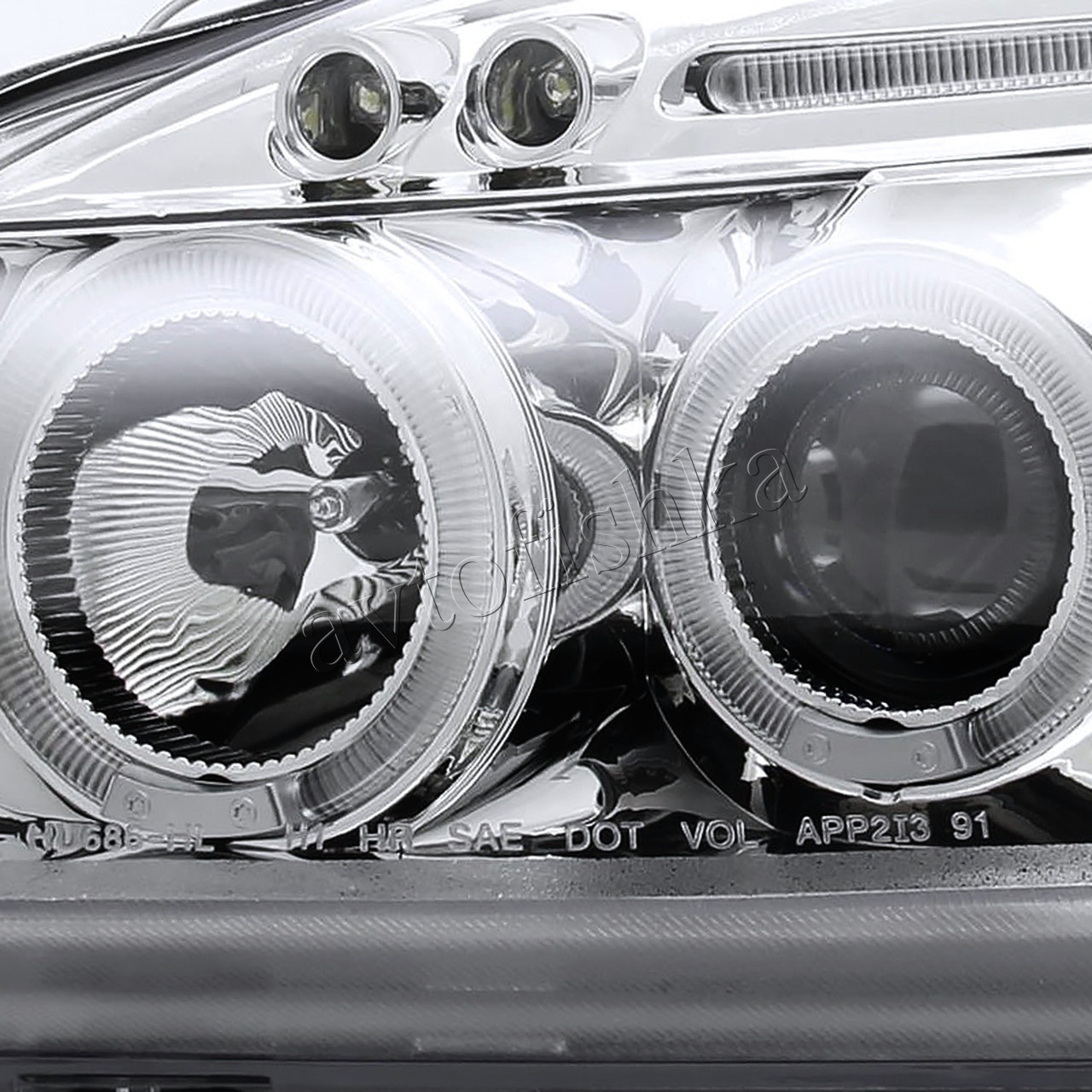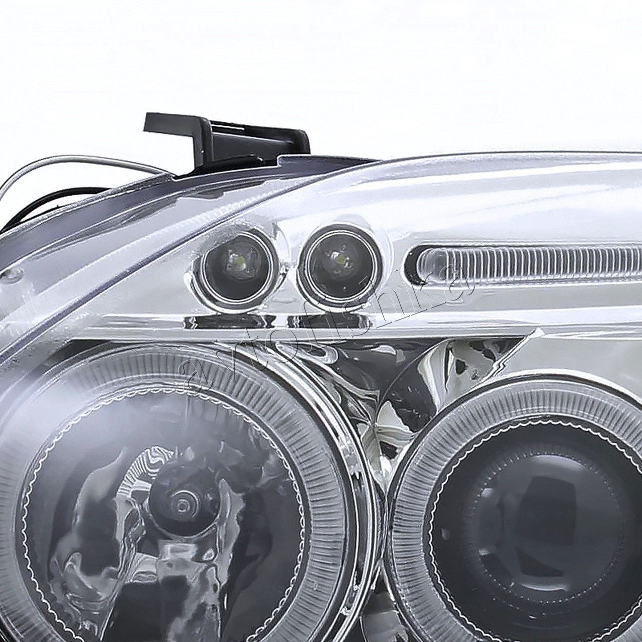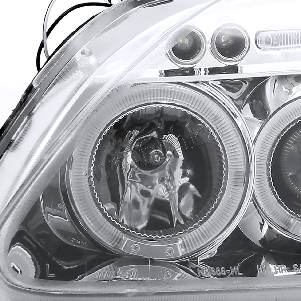 —Honda Civic, Ferio EK (99-00) фары передние хромированные, со светящимися ободками с белыми рефлекторами, линзовые