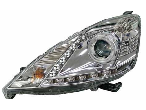 Honda Fit, Jazz (07-) GE, фары передние линзовые хромированные, со светящимися ободками, со светодиодной подсветкой, комплект 2 шт.