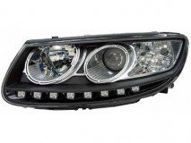 Hyundai Santa Fe (06-) фары передние линзовые черные со светодиодной DRL подсветкой, комплект 2 шт.