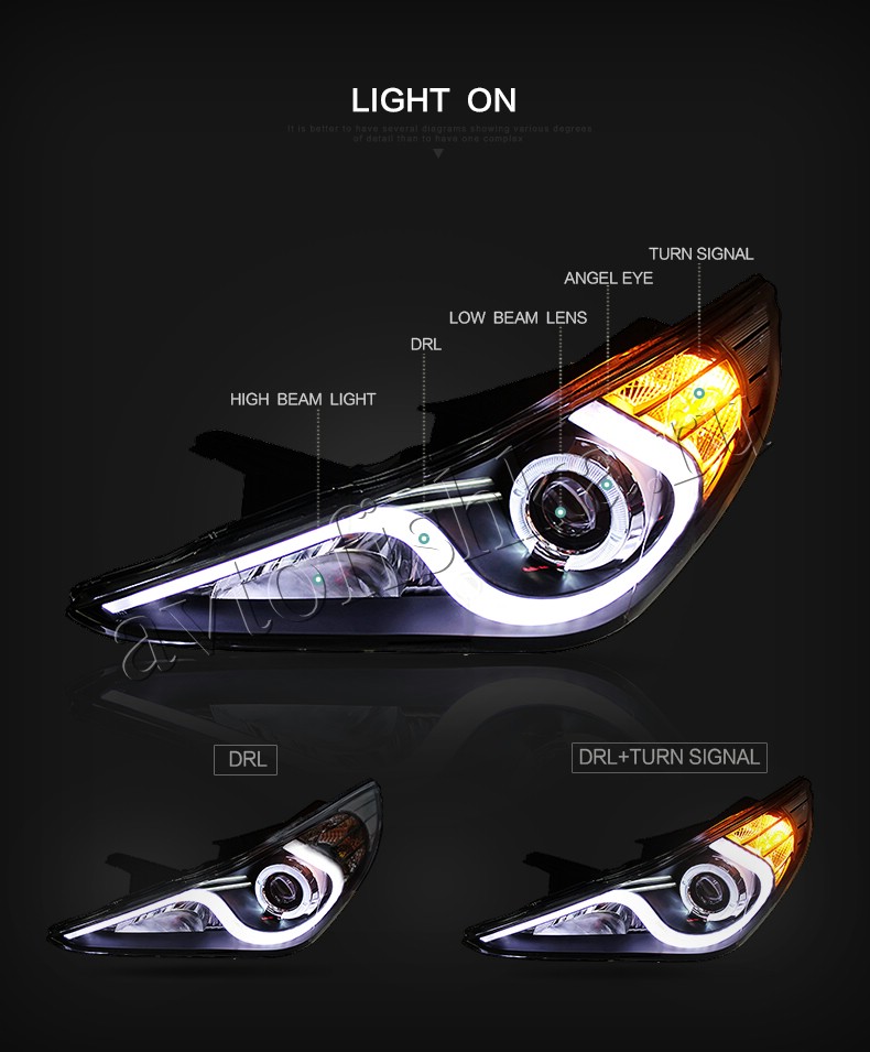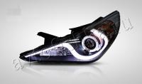 Hyundai Sonata (10-14) линзовые передние черные фары, со светящимися ободками и подсветкой DRL, комплект 2 шт.