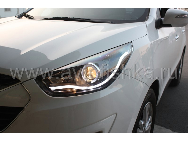 —Hyundai Tucson ix35 (10-) фары передние хромированные, со светодиодной подсветкой, комплект 2 шт.