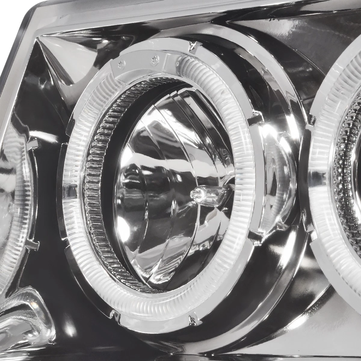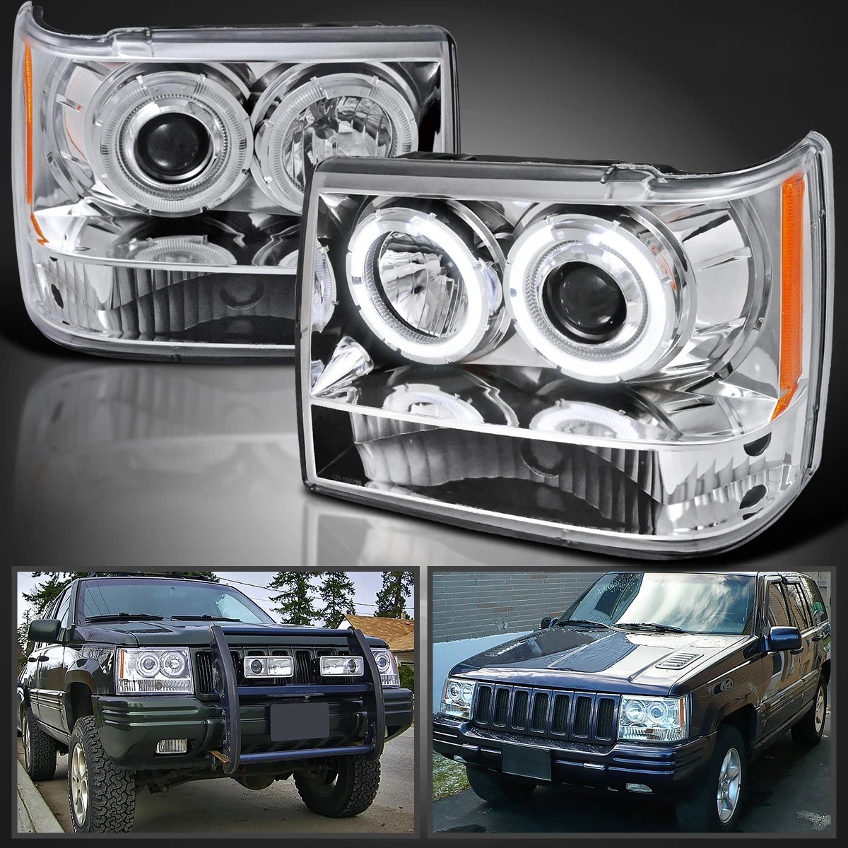 Передние фары для Jeep Grand Cherokee (1993-1996) | Хромированные тюнинговые | С проекторами и LED-ободками