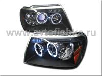 Jeep Grand Cherokee (99-04) фары передние линзовые черные, со светящимися ободками, комплект 2 шт.