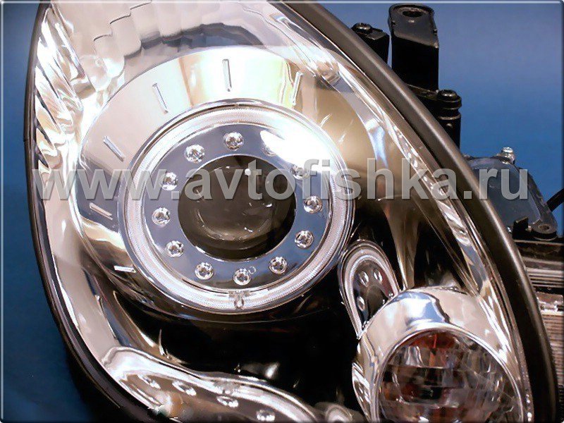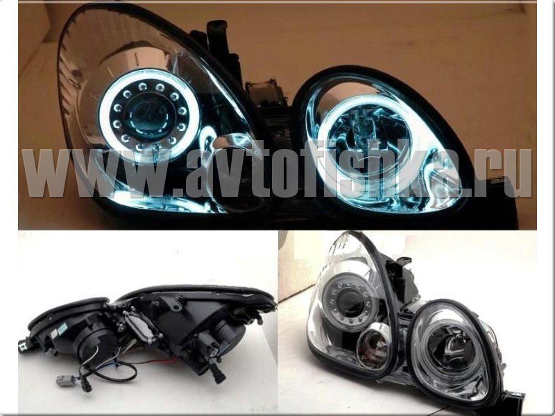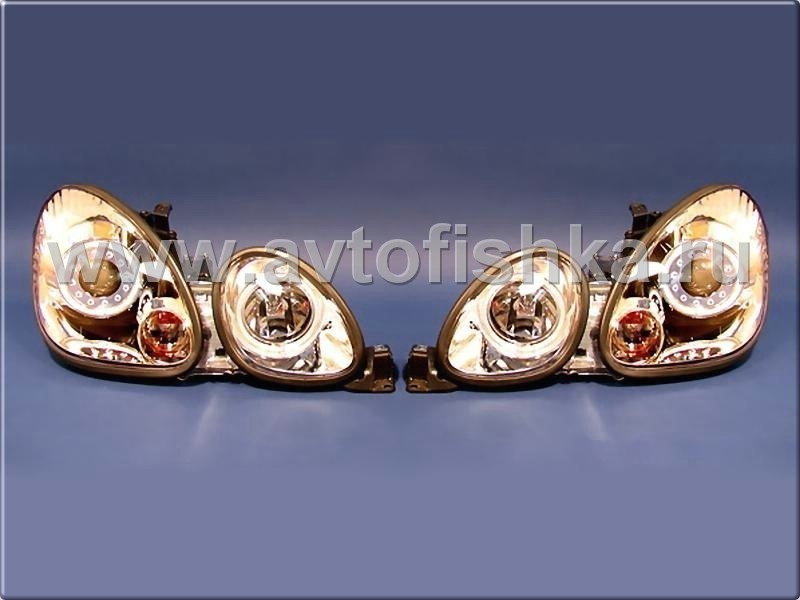Lexus GS300, GS400, GS430, Toyota Aristo (97-05) фары передние линзовые хромированные со светящимися ободками, под ксенон, комплект 2 шт.