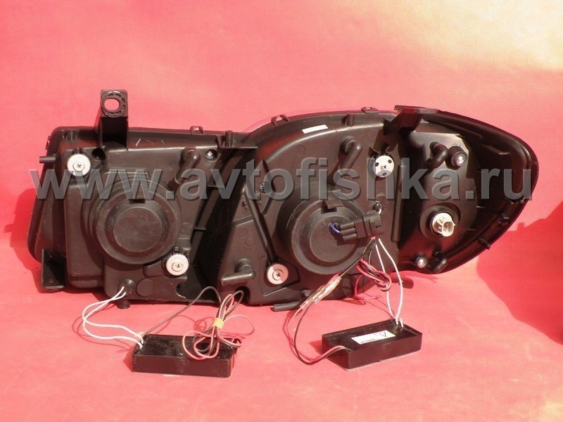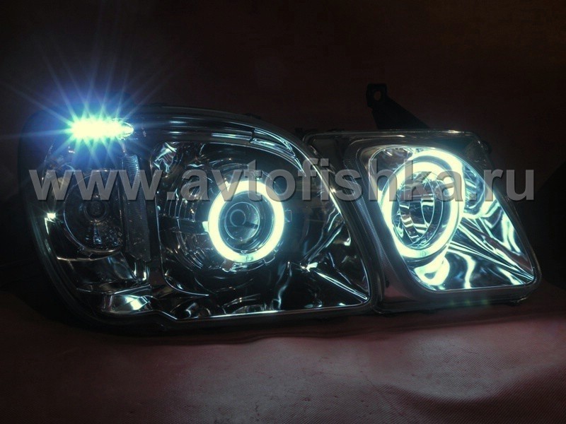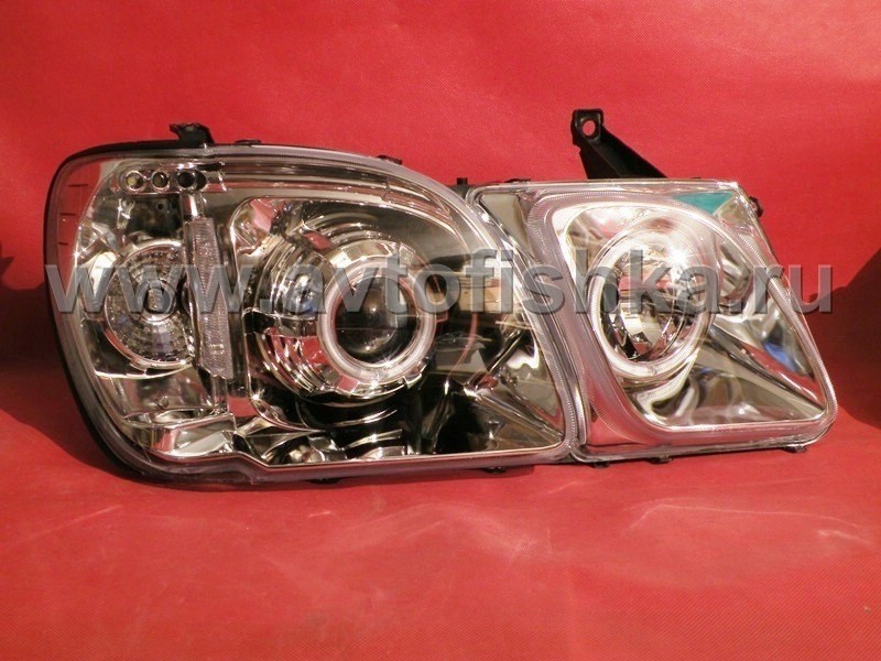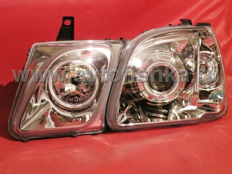 Lexus LX470 (1998-2007) фары передние линзовые хромированные, со светящимися ободками, комплект 2 шт