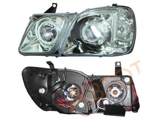 —Lexus LX470 (98-07) фары передние линзовые хромированные, со светящимися ободками, голубое стекло, комплект 2 шт