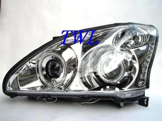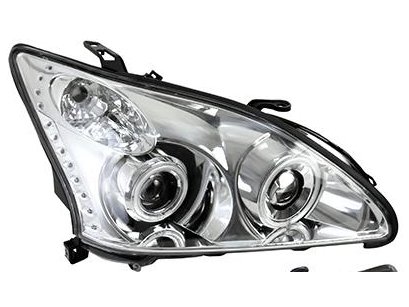 Lexus RX330, RX350 (2003-2008) фары передние линзовые хромированные, со светящимися ободками и светодиодной подсветкой, комплект 2 шт.