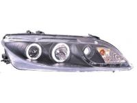 —Mazda 6 (2002-2007) тюнинговые передние черные линзовые фары, со светящимися ободками и подсветкой DRL, комплект 2 шт.
