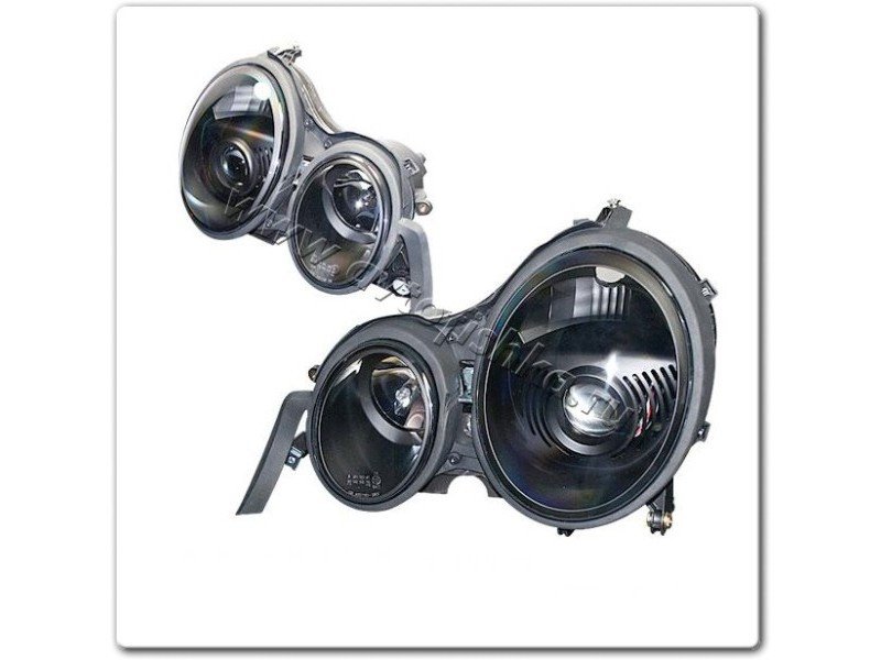 Mercedes E W210 (95-99) фары передние линзовые черные с перфорацией, дизайн AMG, комплект 2 шт.