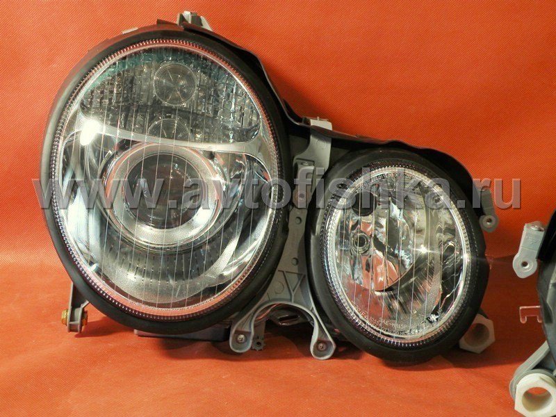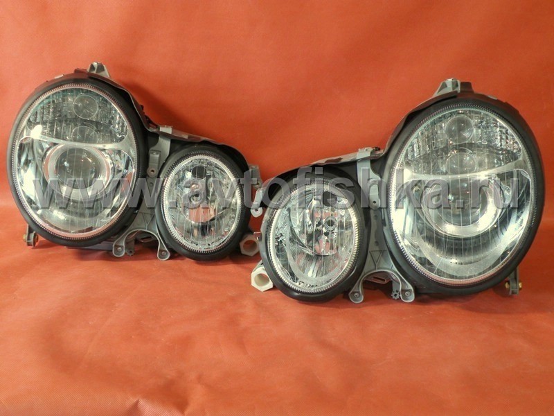 Mercedes E W210 (99-02) фары ксеноновые передние линзовые хромированные под корректор, комплект 2 шт.