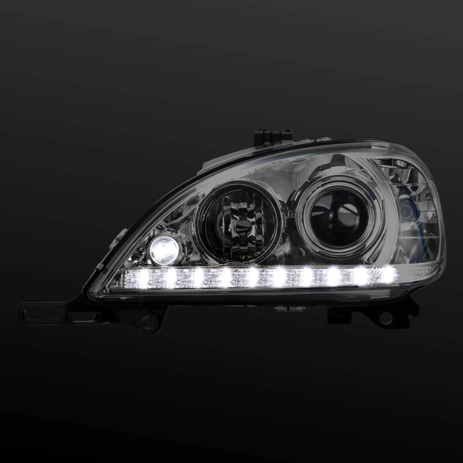 Передние фары для Mercedes W163 M/ML-Класс (1998-2005) | Линзованные хромированные | Светодиодная полоса и электрокорректор