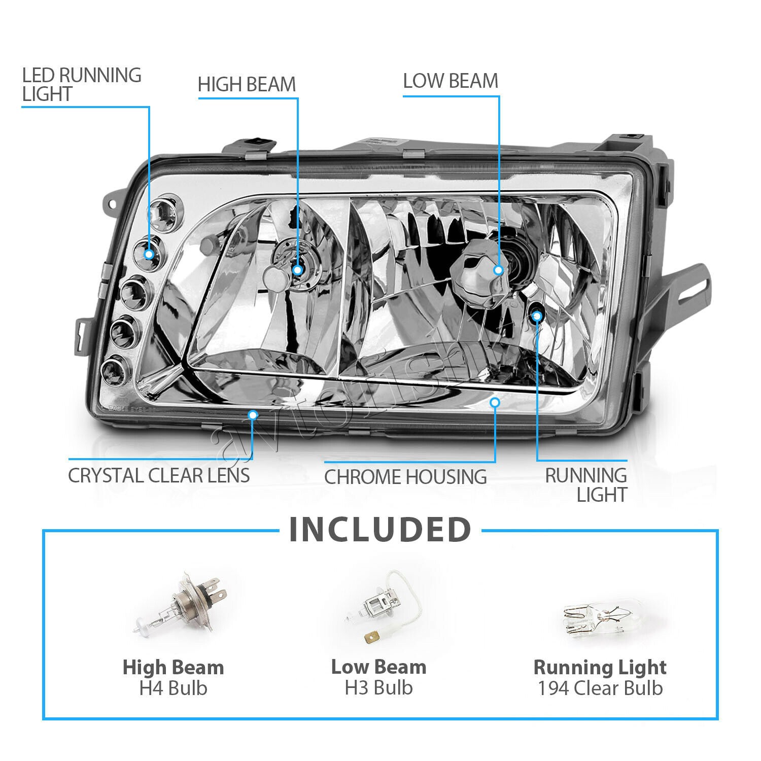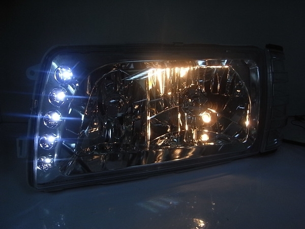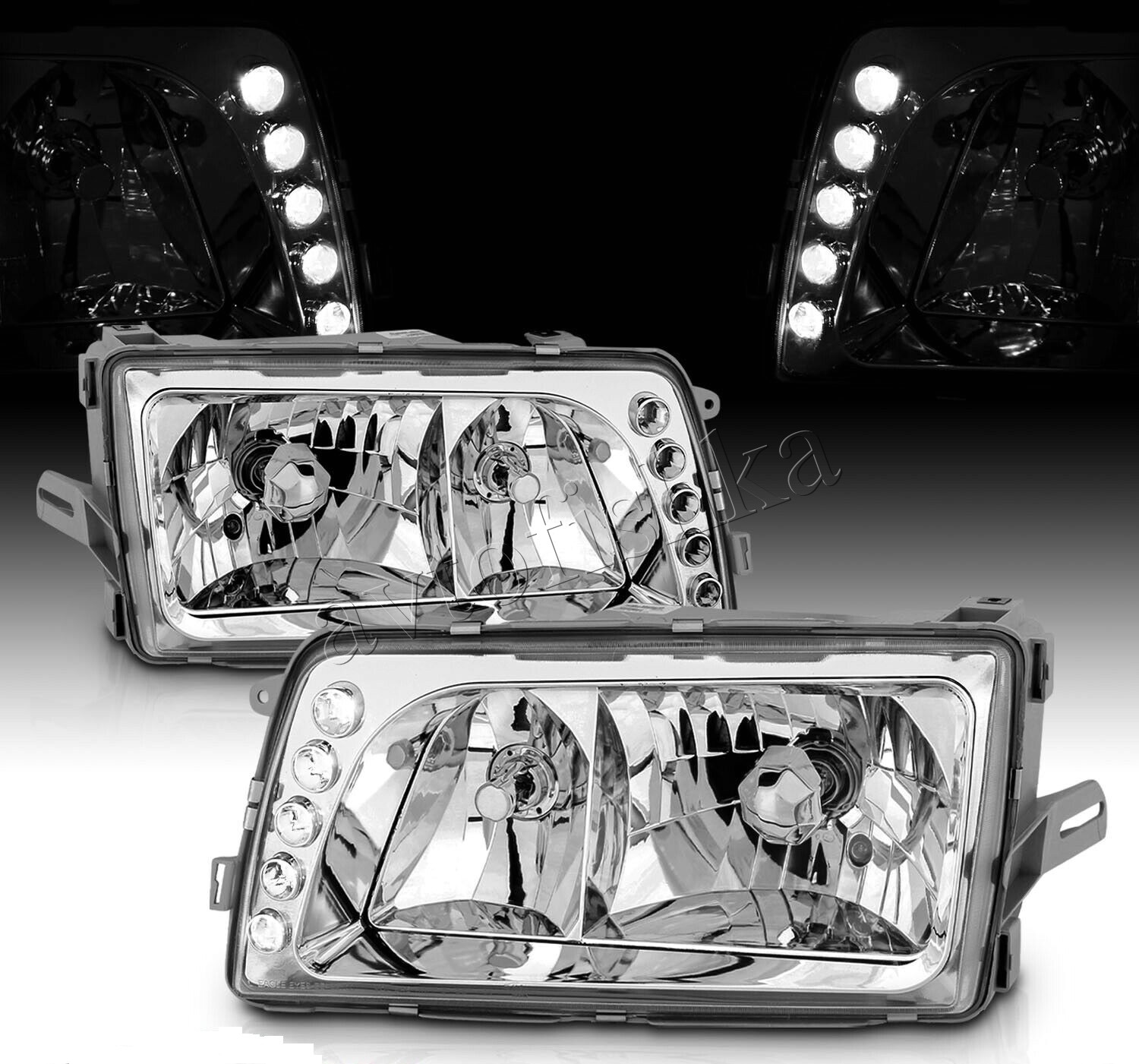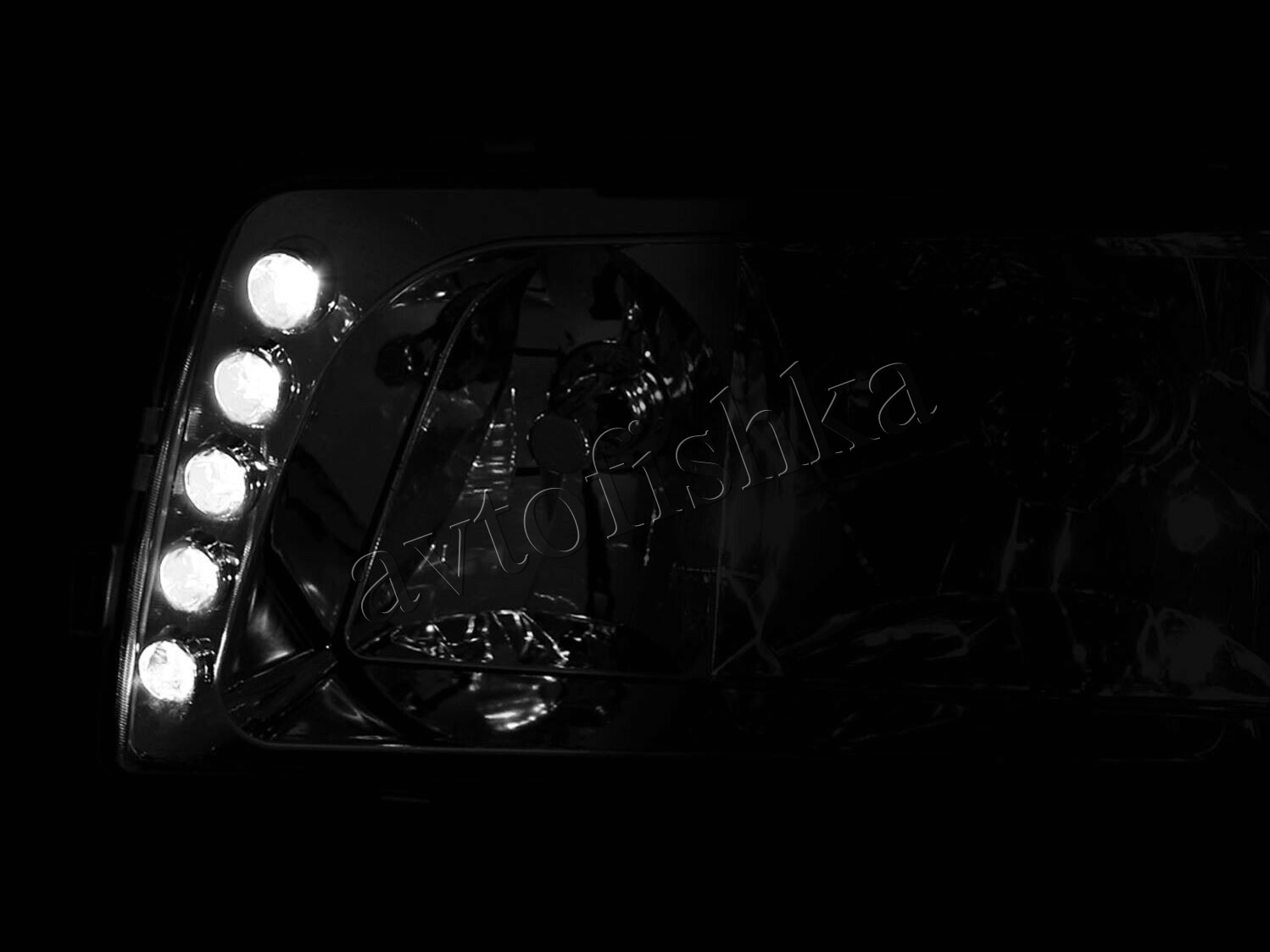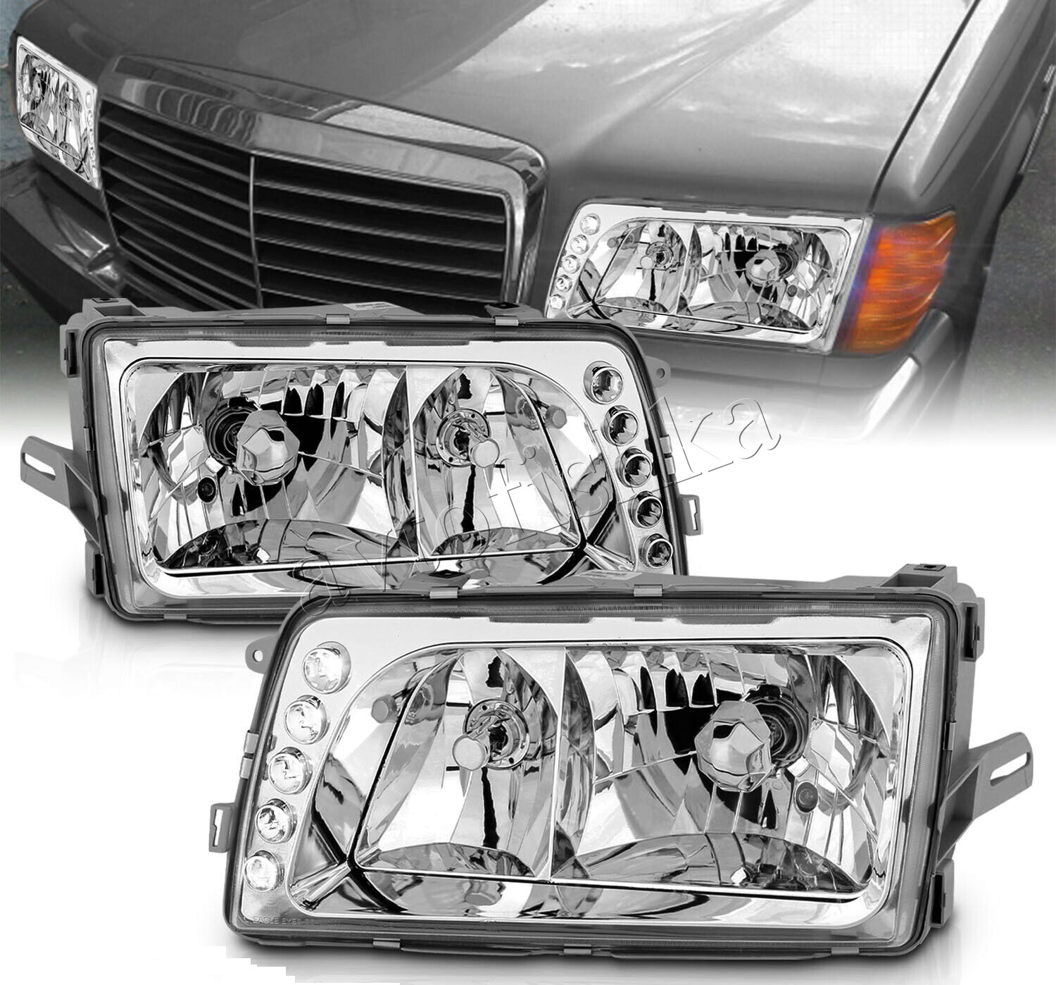 Mercedes S W126 (80-92) фары передние хромированные со светодиодными габаритными огнями, комплект 2 шт.