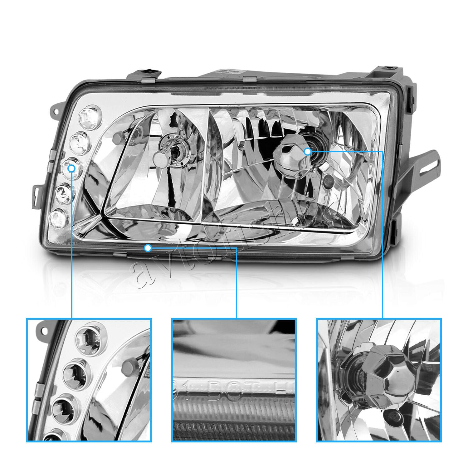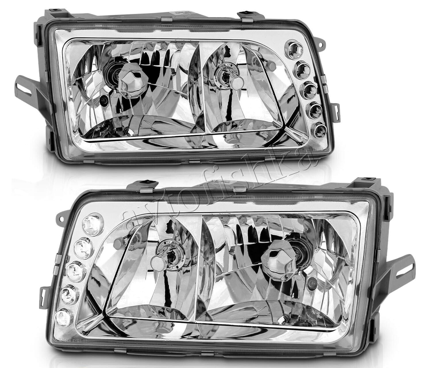 —Mercedes S W126 (80-92) фары передние хромированные со светодиодными габаритными огнями, комплект 2 шт.