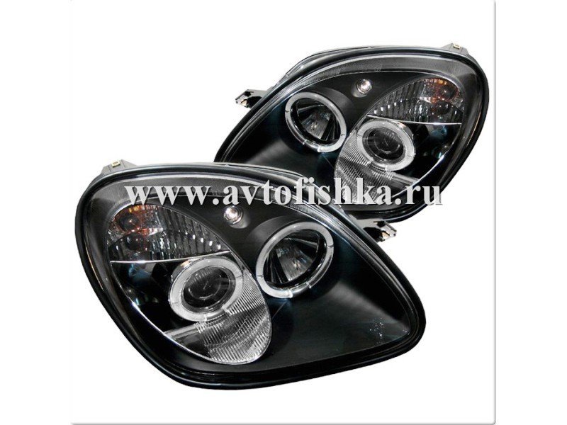 —Mercedes SLK R170 (98-04) фары передние линзовые черные, со светящимися ободками, комплект 2 шт.