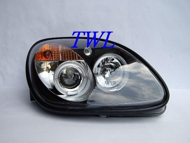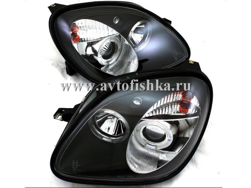 Mercedes SLK R170 (98-04) фары передние линзовые черные, со светящимися ободками, комплект 2 шт.
