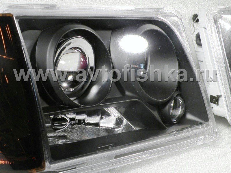 —Mercedes W124 (84-93) фары передние линзовые, черные, прозрачные стекла, комплект 2 шт.