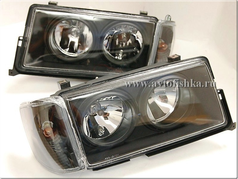 Mercedes W201 190E 190D (82-93) фары передние черные с указателем поворотов, комплект 2 шт.