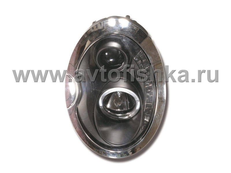 Mini Cooper фары передние линзовые черные, со светящимися ободками, с DRL подсветкой, комплект 2 шт.