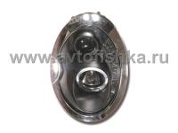 —Mini Cooper фары передние линзовые черные, со светящимися ободками, с DRL подсветкой, комплект 2 шт.