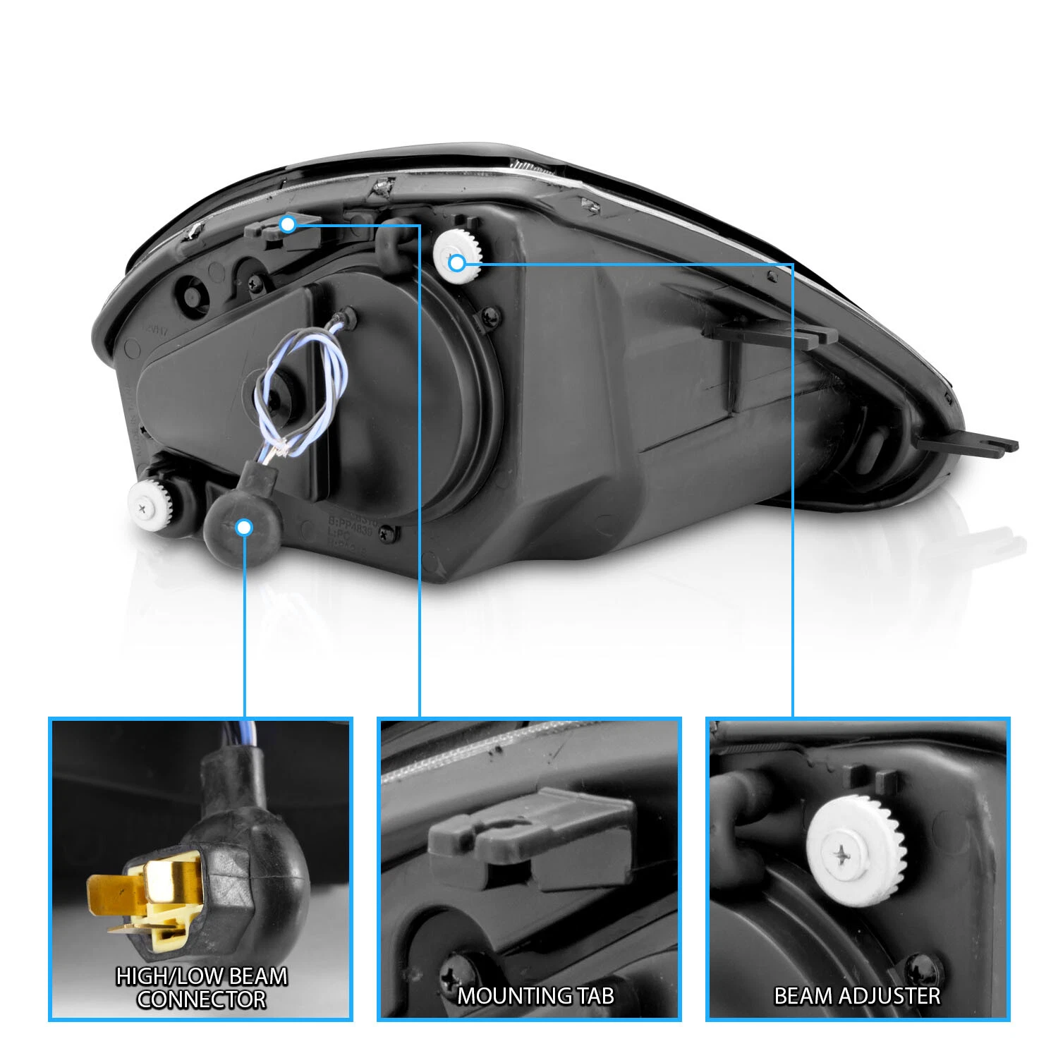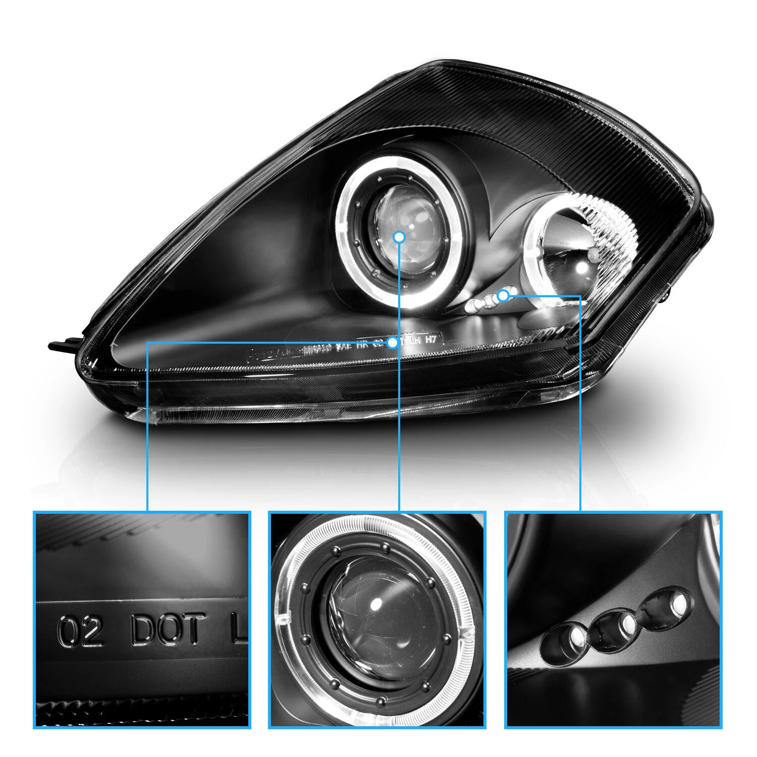 • Черный корпус с линзованной (проекторной) оптикой