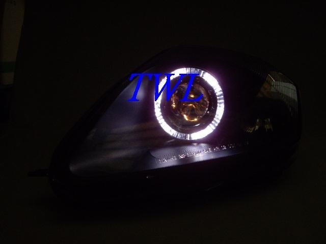 Mitsubishi Eclipse (00-05) фары передние линзовые черные, со светящимися ободками, комплект 2 шт.