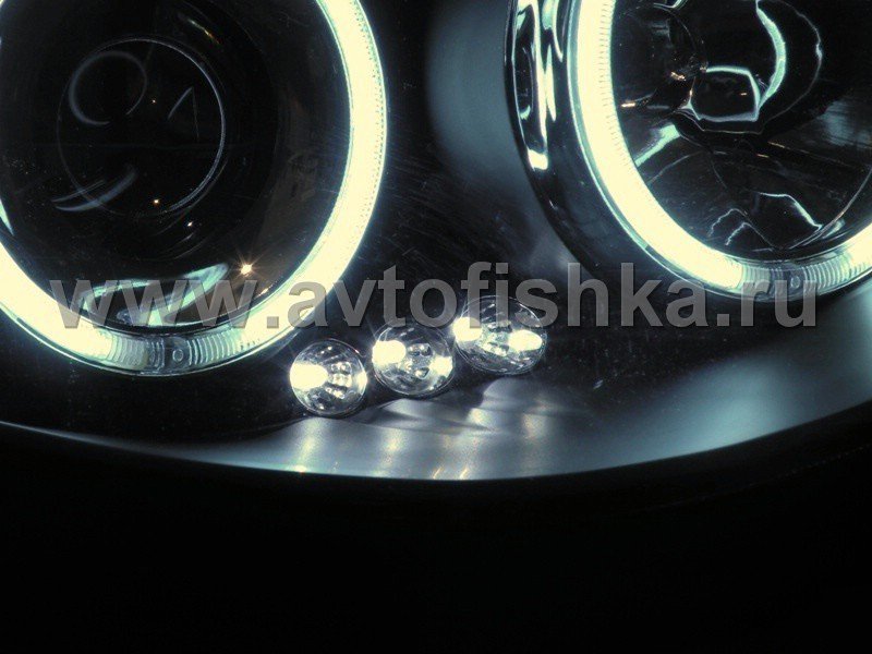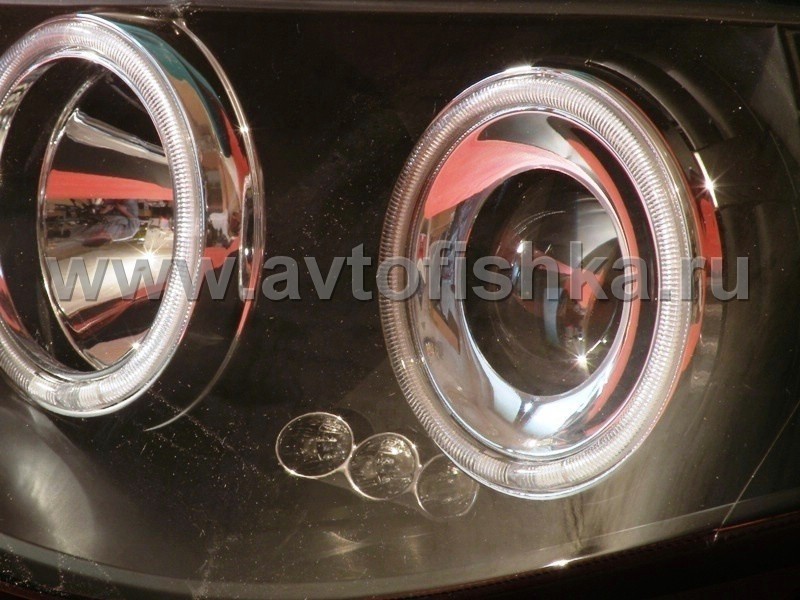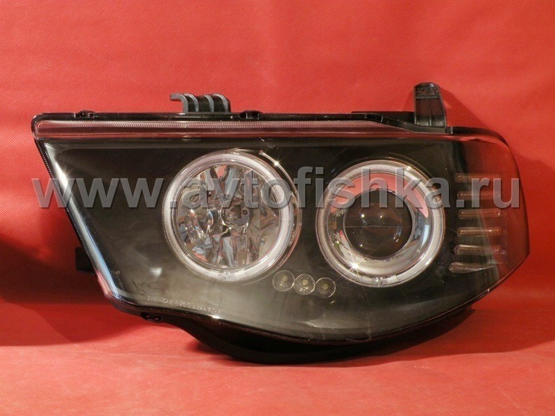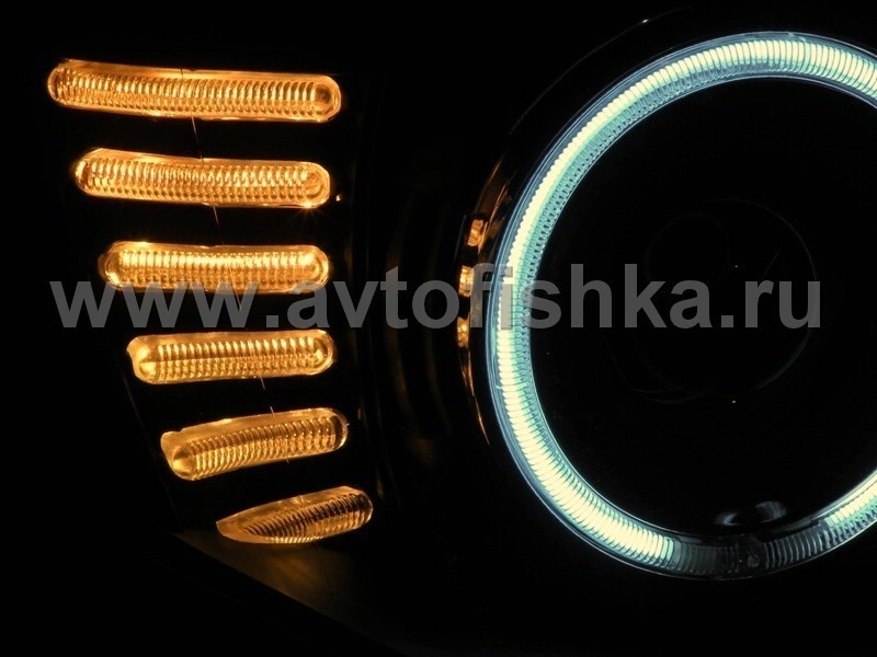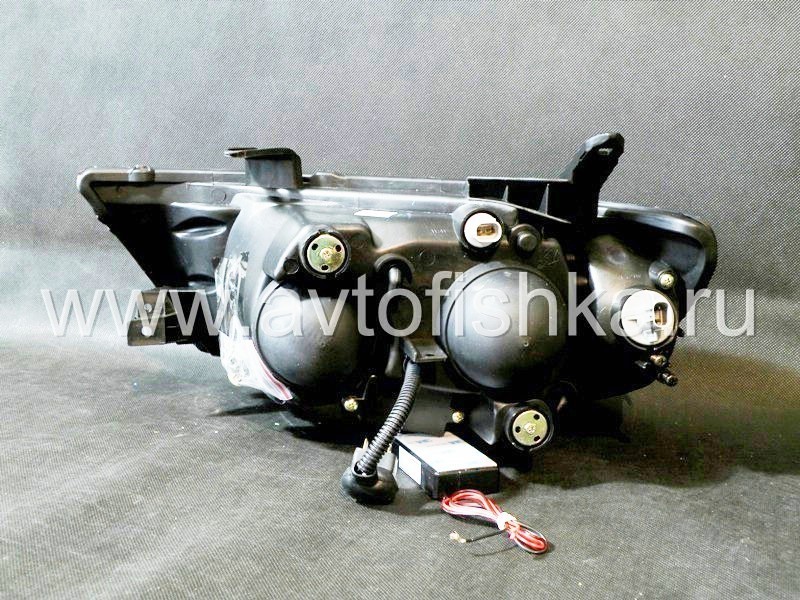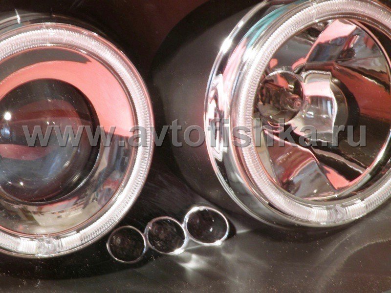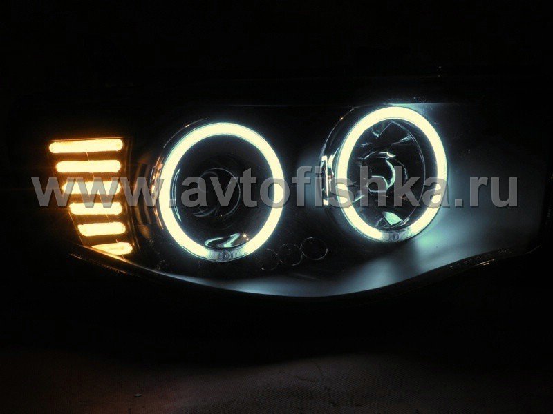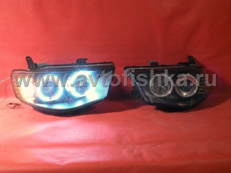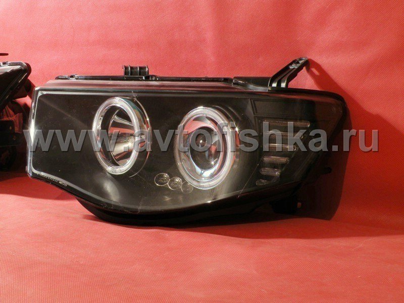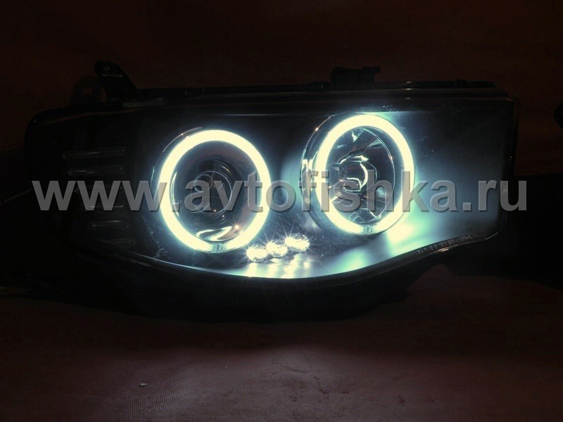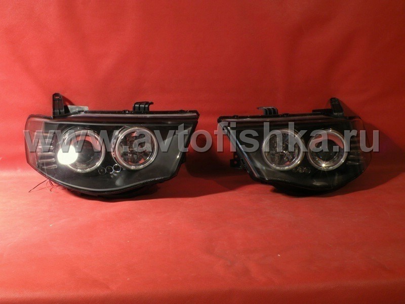 Mitsubishi L200 Triton (2005-) передние фары линзовые со светящимися ободками, черные, комплект 2 шт.