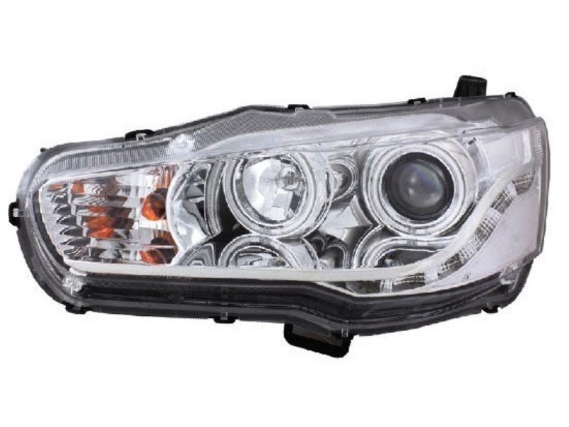 —Mitsubishi Lancer (07-) линзовые передние фары хромированные, со светящимся ободком, в комплекте 2 шт.