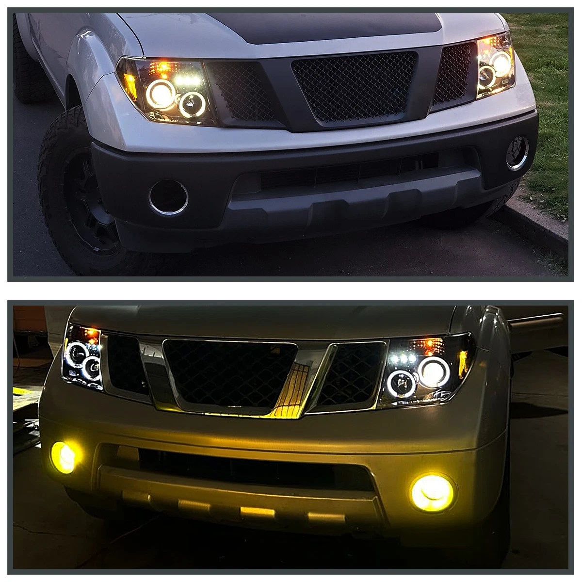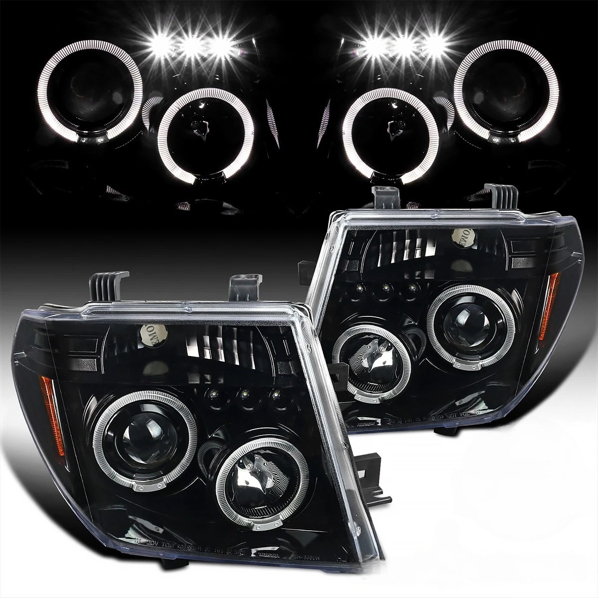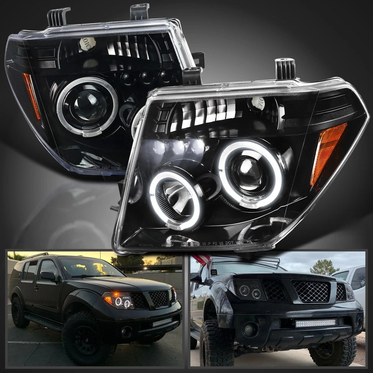 Придайте вашему Nissan Frontier или Pathfinder современный агрессивный стиль — комплект черных линзованных фар с двойными светодиодными ободками и LED-полосой подарит автомобилю уникальный образ и превосходное качество освещения!
