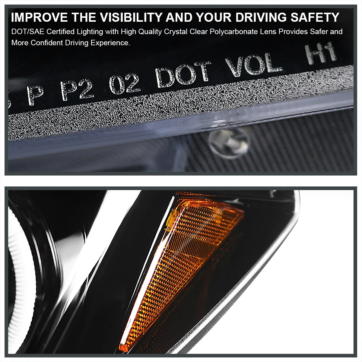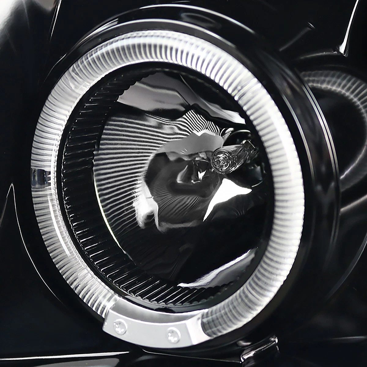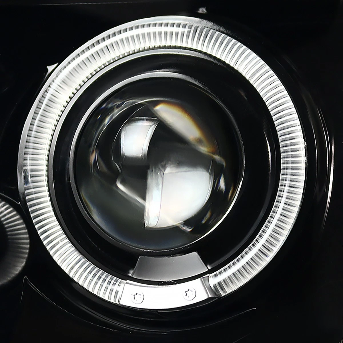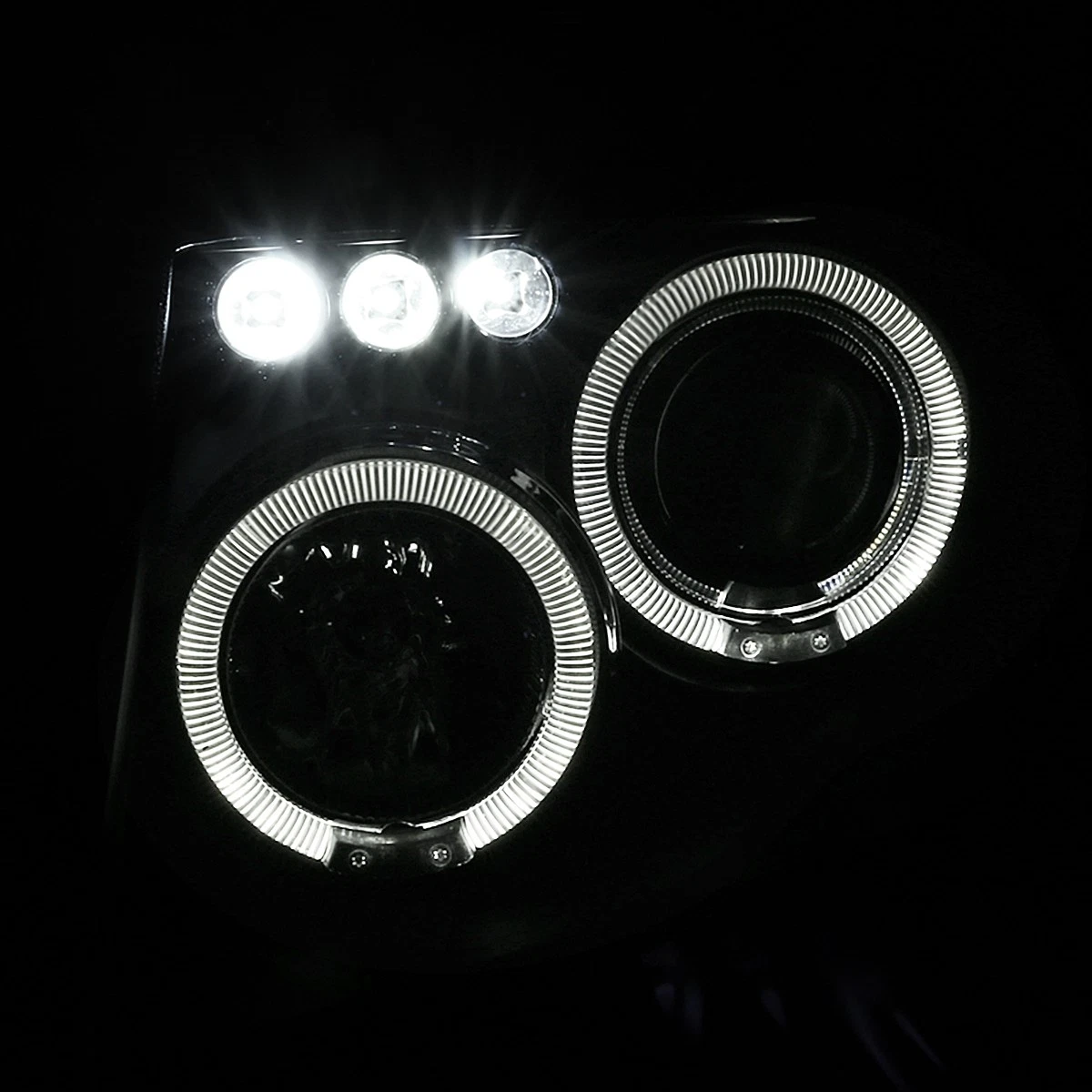 - Двойные светодиодные ободки и LED-полоса: Яркие светодиодные кольца (ангельские глазки) в сочетании со светодиодной полосой создают эффектную световую подпись, выполняя функцию дневных ходовых огней и делая автомобиль заметным на дороге.